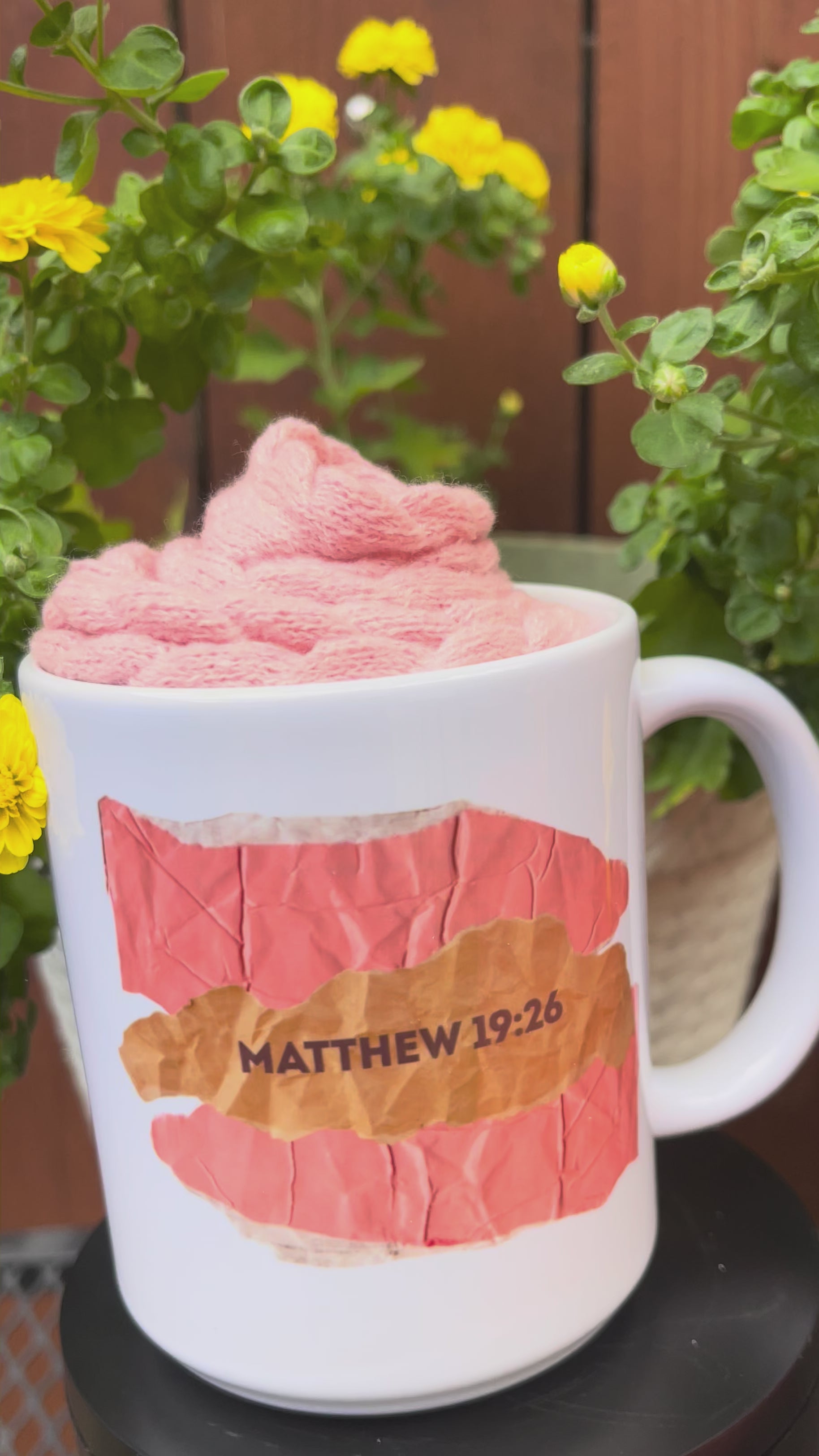 Brighten your day with this uplifting ceramic mug featuring the empowering message “All things are possible.” Designed in coral-toned lettering with a playful arrow detail, this mug is perfect for coffee, tea, or as a decorative holder. The soft pink socks inside adds a cozy, touch—ideal for gifting or personal inspiration.